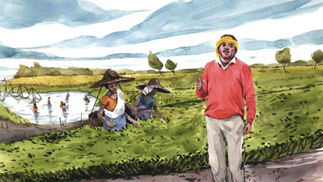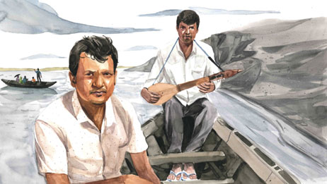 Khagen Sanyasi, 55, a regular singer in Bengali on the local radio station, sang of the way “climate change and unpredictable floods have made people poorer”.