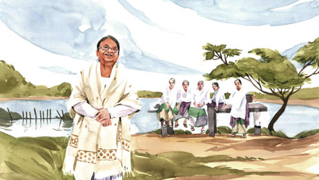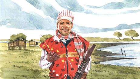 Bhadra Rajwar, a community leader, lives in Nazira near Dikhow river, another tributary of the Brahmaputra. He sings of climate change; of how some tea garden workers wanted to farm, only to see their farms washed away by floods. They lost their land, and stayed saddled with debt, as they had borrowed to take their farms on lease.